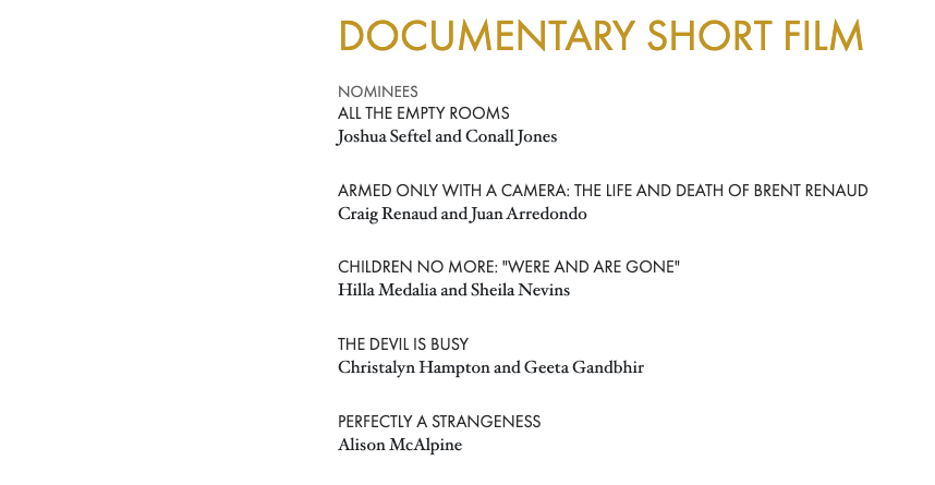 Catch all three categories of Oscar-nominated short films on the big screen before the winners are announced on March 15! Live action, animated, and documentary shorts are shown as three separate programs. All showtimes on this page are for DOCUMENTARY shorts.PT2H33M2026-02-202026 Oscar Short Films: Documentary"2026 Oscar Short Films: Documentary"Showtimes
